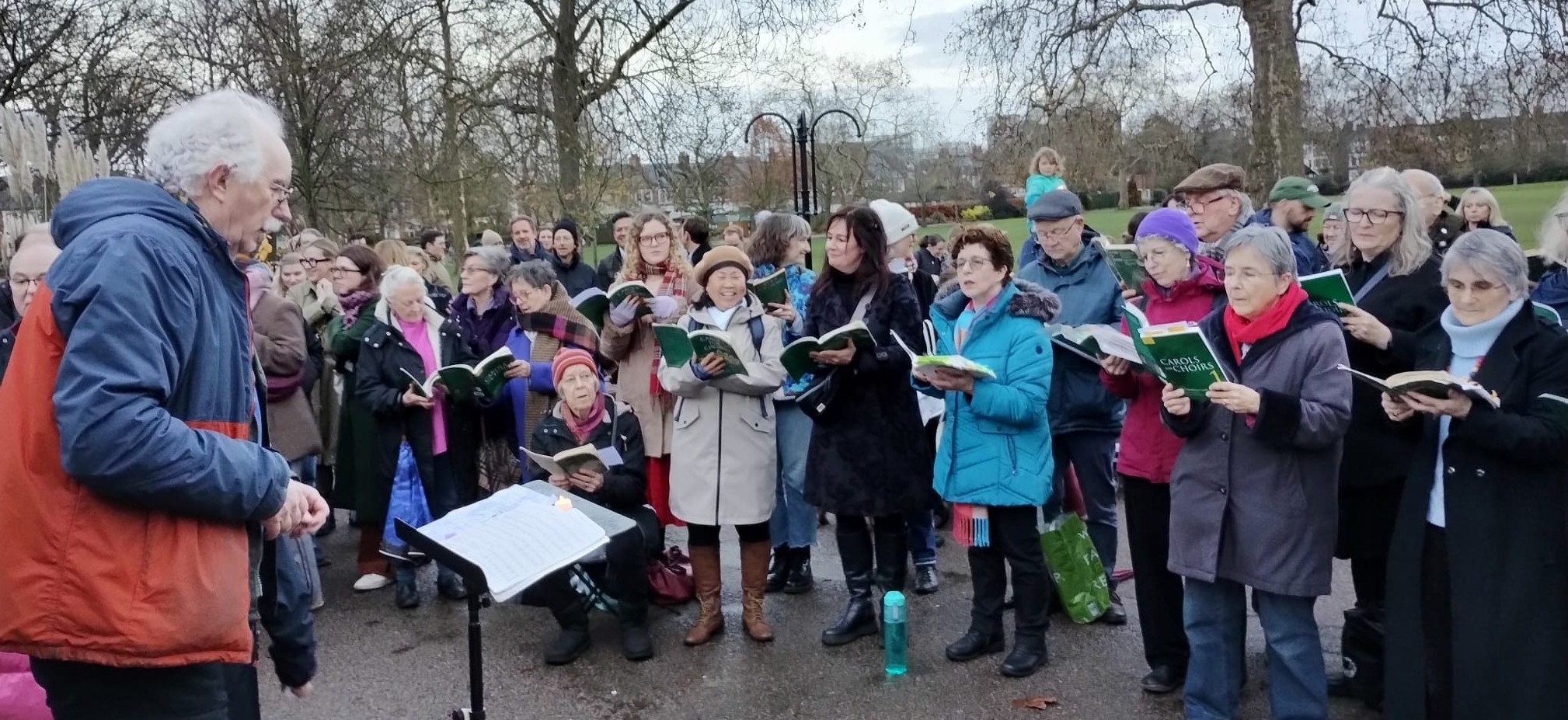 6th December: Queen's Park Singers led carol singing in Queen's Park to celebrate the switching on of Christmas lights and to promote fundraisng for a new paddling pool in the children's playground.